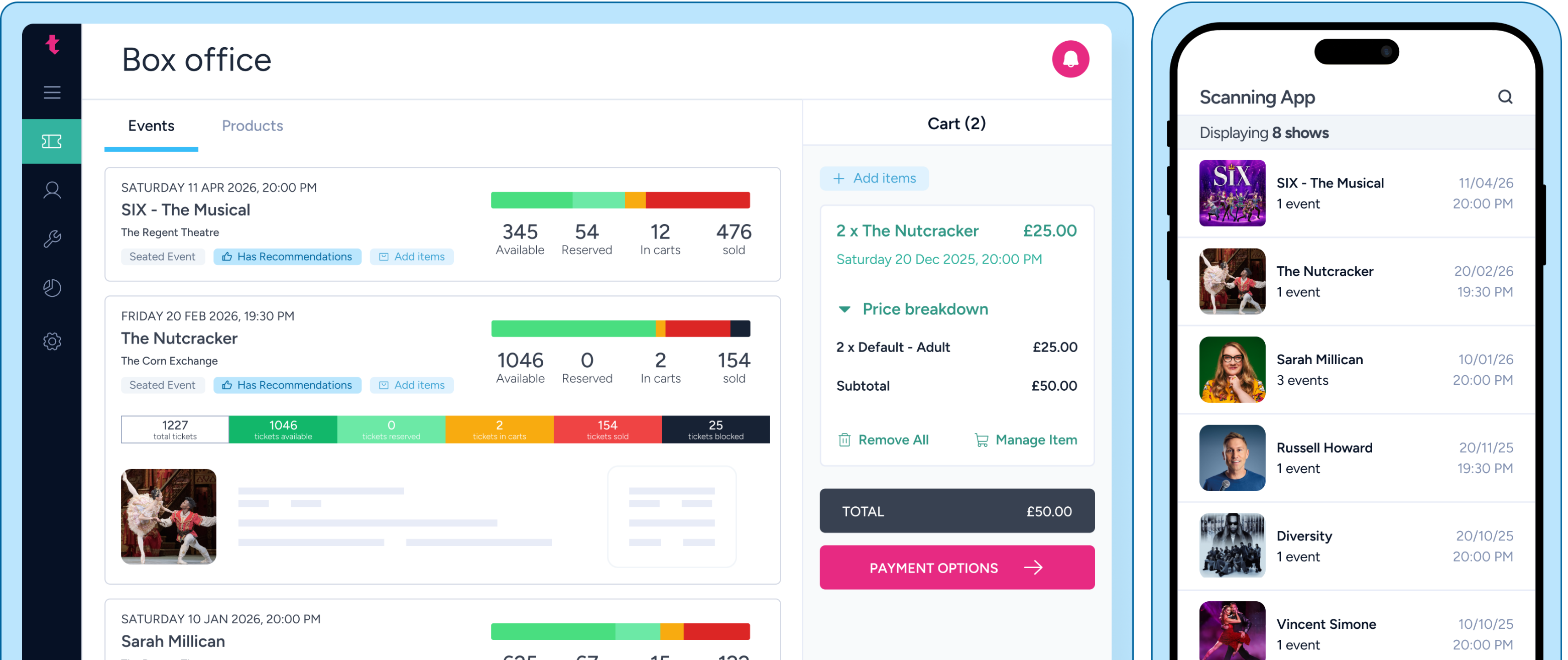 Booking is just the beginning. Ticketsolve powers the whole audience journey: smart pre-show upsells through Event Hub, easy mobile tickets, fast scanning at the door, and a polished front-of-house experience. Add in timely follow-ups after the event and you get happier customers, stronger loyalty, and repeat bookings that come naturally.