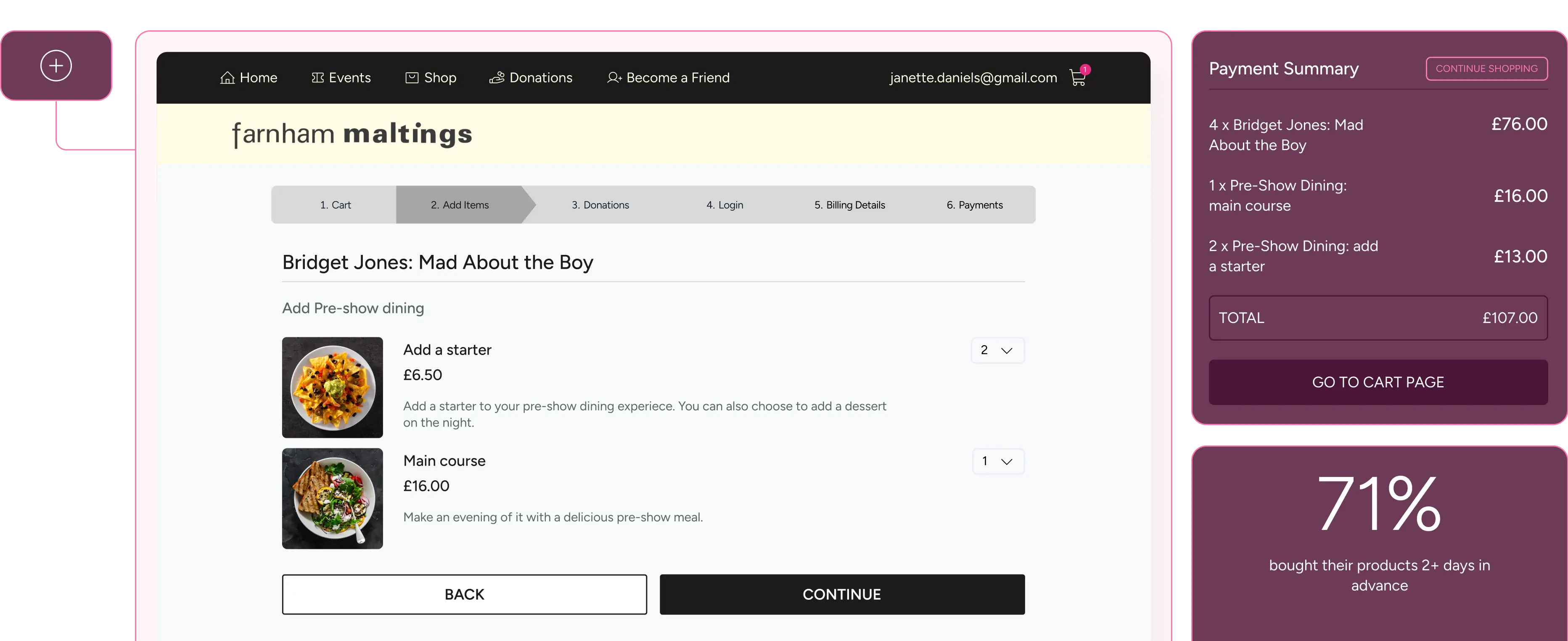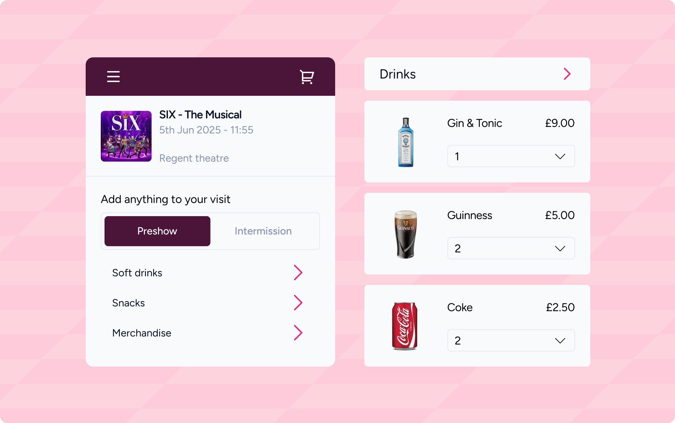 Well-timed, experience-led offers increase pre-show spend without adding friction. Across beta venues, Event Hub has delivered measurable percentage uplifts, with an average secondary spend of £11.22 per customer and stronger repeat booking behaviour.