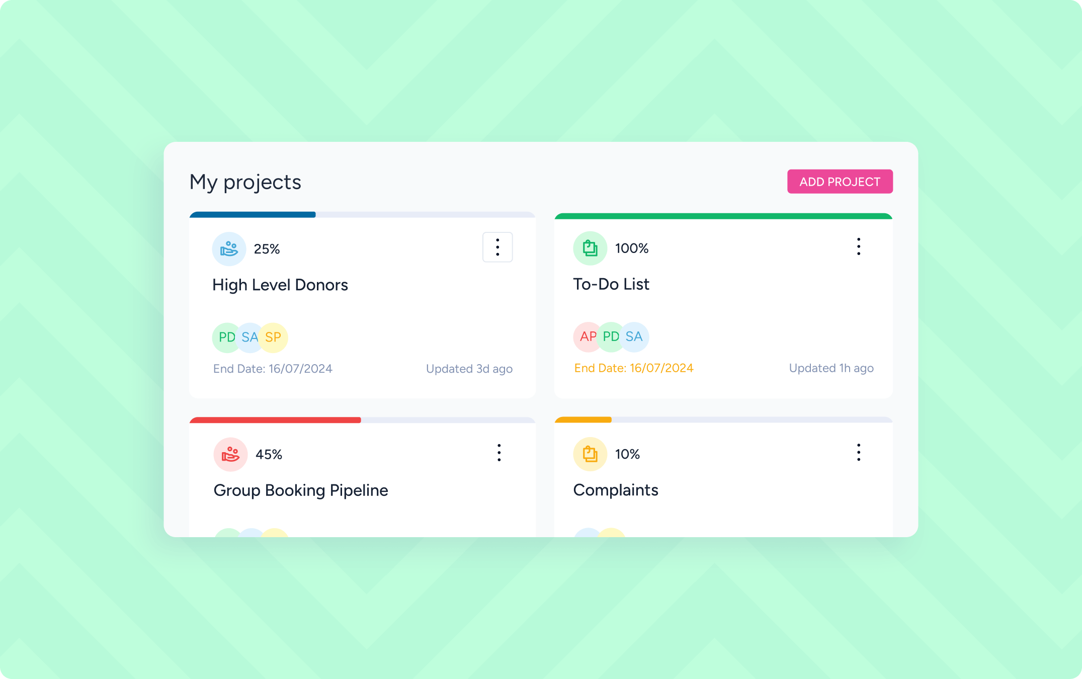 Projects helps organisations move from scattered activity to coordinated delivery. It gives teams a shared way to plan, track, and progress work, while giving leaders clear visibility into what’s happening, what’s at risk, and what’s coming next.