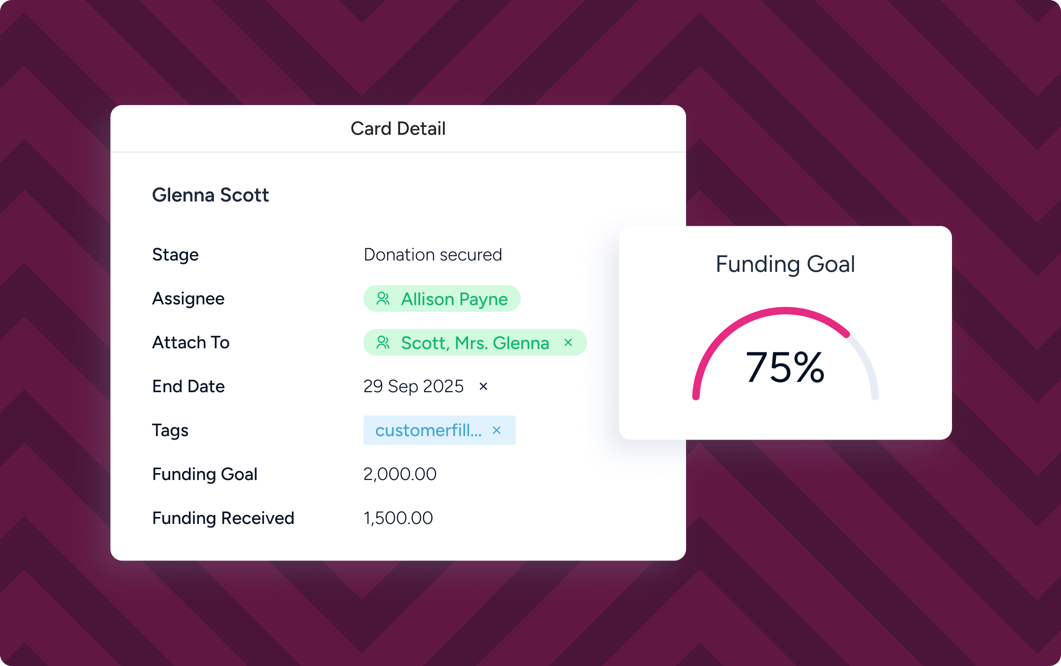 Support major giving and stewardship workflows within the same system, with clear goal progress.