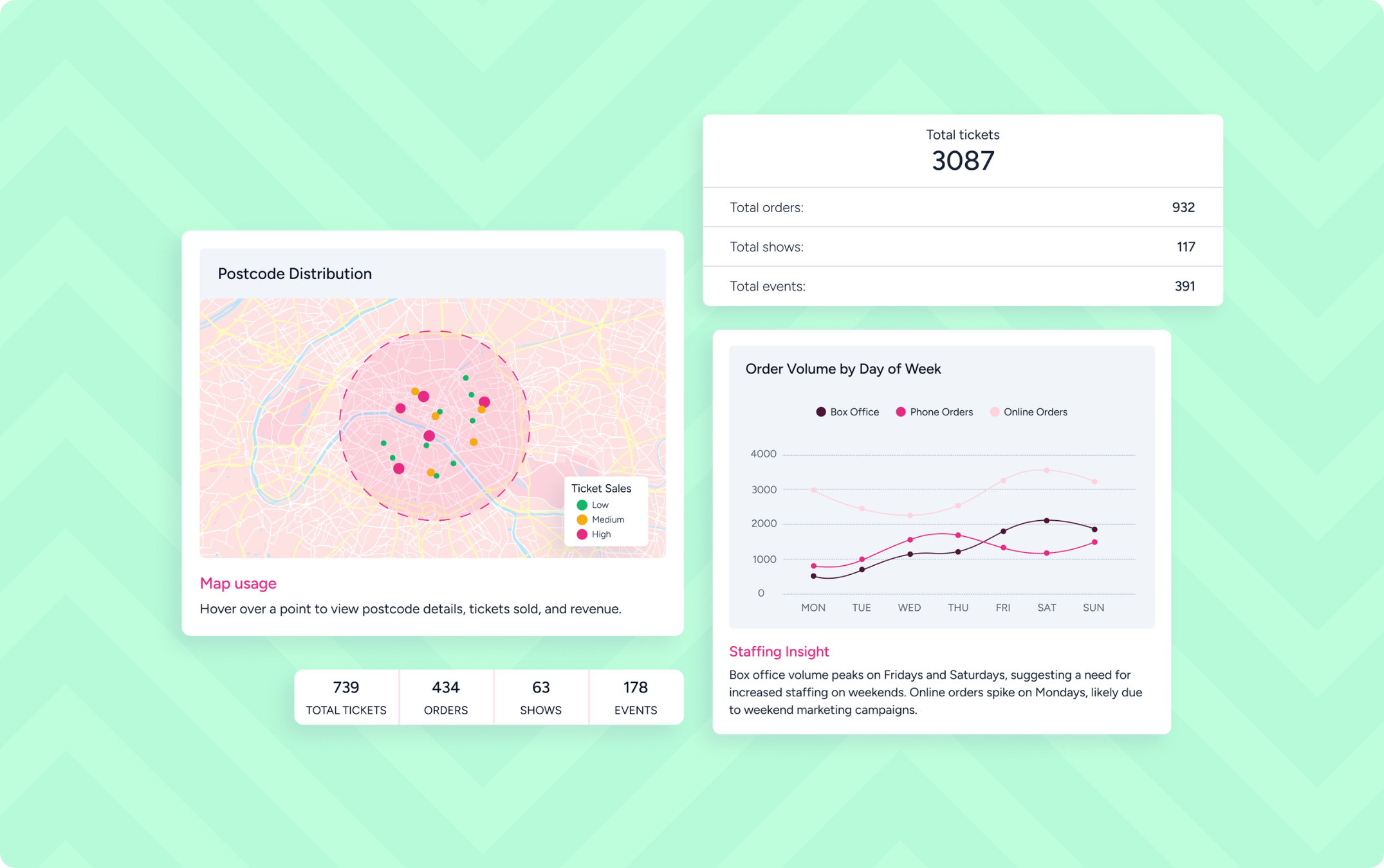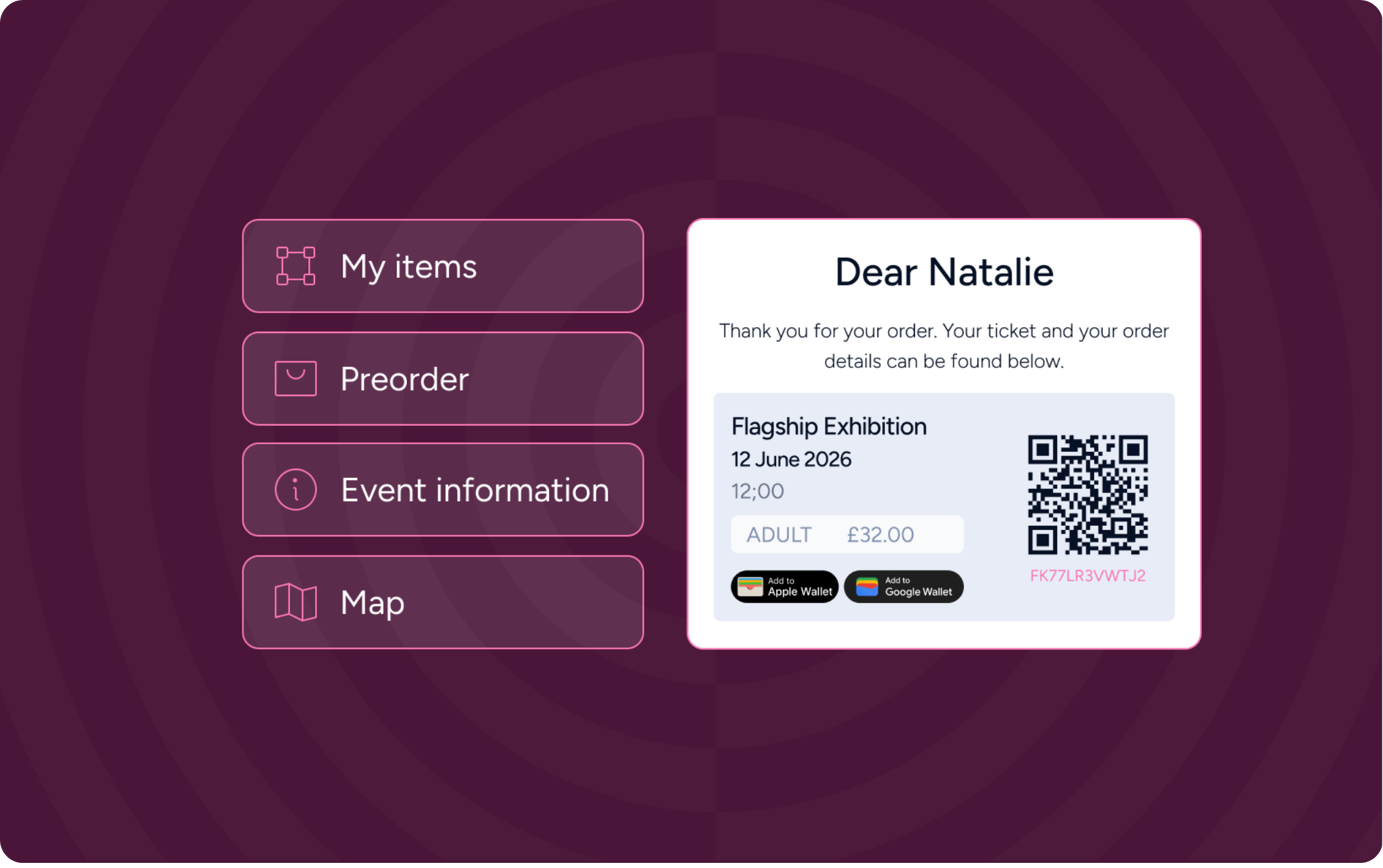 For commercial attractions, the ticket sale is just the start. Ticketsolve is built to maximise revenue at every stage of the visitor journey, from the first click to the last upsell. Add-ons appear naturally inside the booking flow, pre-arrival prompts let visitors pre-order parking, food, retail, or premium experiences before they leave home, and on-site kiosks present the right offer at the right moment. Across beta venues, our Event Hub tools deliver an average secondary spend uplift of £11.22 per customer, with 71% of users pre-ordering at least two days in advance, easing pressure on your team while giving visitors a smoother, more personal experience.