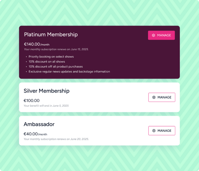 Designed to boost attendance, loyalty, or secondary spend. Popular benefits include discounts, waived fees, or exclusive access. - Philanthropic Schemes